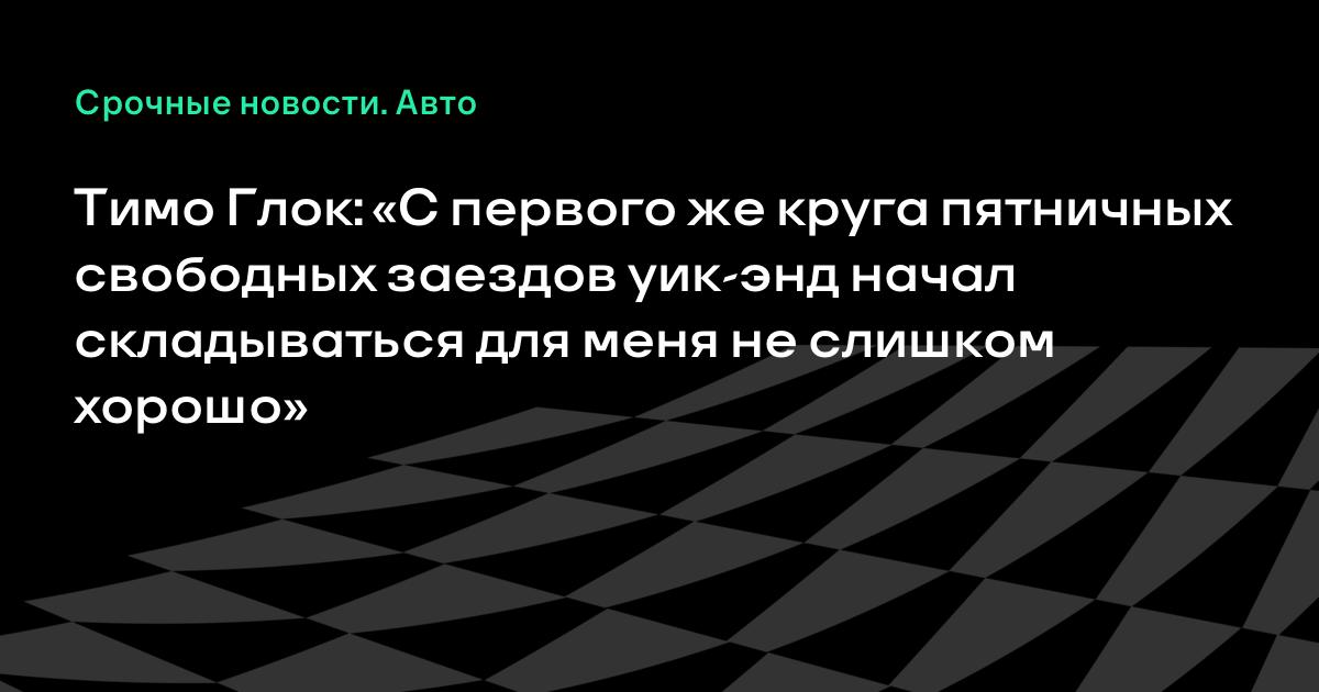 Тимо Глок: «С первого же круга пятничных свободных заездов уик-энд начал складываться для меня не слишком хорошо»
