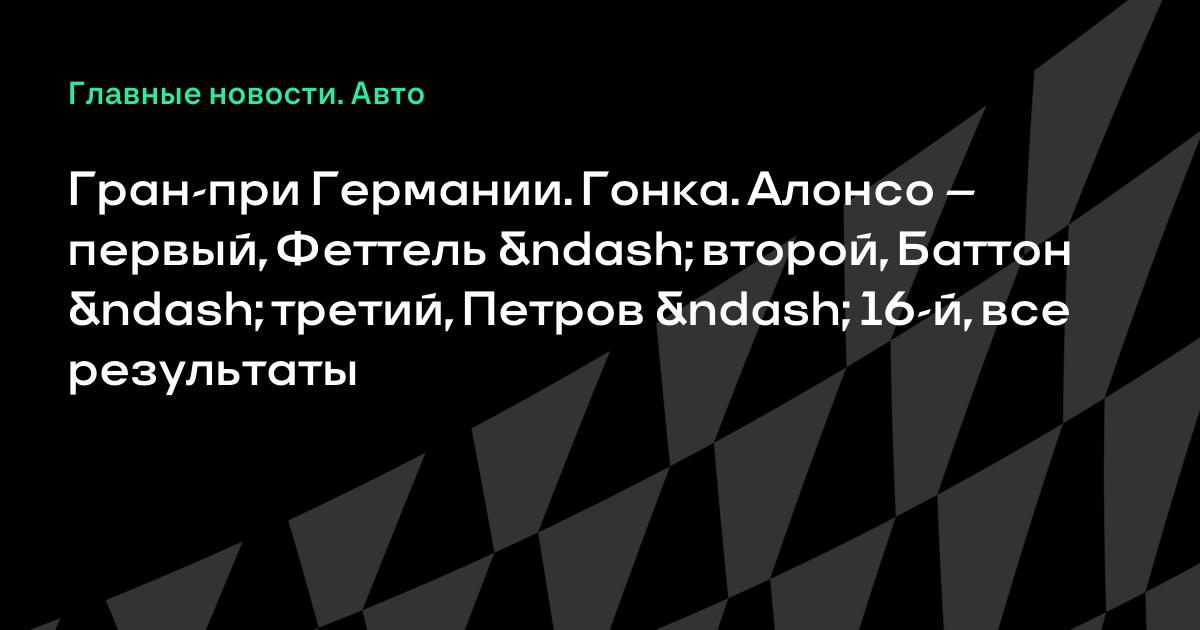 Гран-при Германии. Гонка. Алонсо – первый, Феттель – второй, Баттон – третий, Петров – 16-й, все результаты