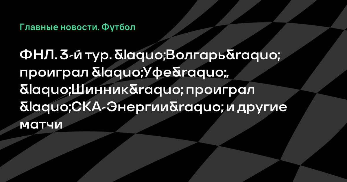 ФНЛ. 3-й тур. «Волгарь» проиграл «Уфе», «Шинник» проиграл «СКА-Энергии» и другие матчи