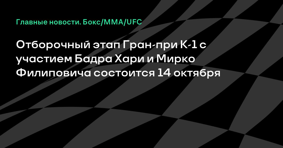 Отборочный этап Гран-при K-1 с участием Бадра Хари и Мирко Филиповича состоится 14 октября