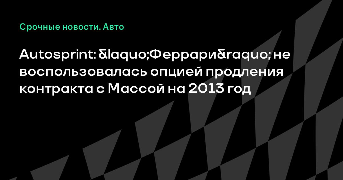 По сообщению Autosprint, в действующем контракте между «Феррари» и ее пилотом Фелипе Массой была опция для продления соглашения еще на один год. Эта опция была односторонней и воспользоваться ей могла только команда. Однако сроки активации этой опции уже прошли. Это значит, что если Масса и останется в «Феррари» в следующем году, ему и Скудерии нужно будет согласовывать абсолютно новый контракт.