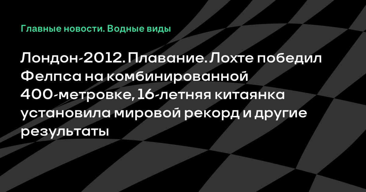 Лондон-2012. Плавание. Лохте победил Фелпса на комбинированной 400-метровке, 16-летняя китаянка установила мировой рекорд и другие результаты