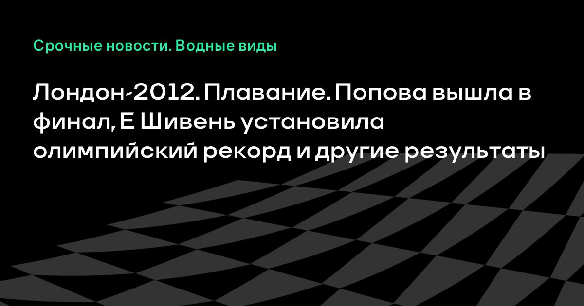 Лондон-2012. Плавание. Попова вышла в финал, Е Шивень установила олимпийский рекорд и другие результаты