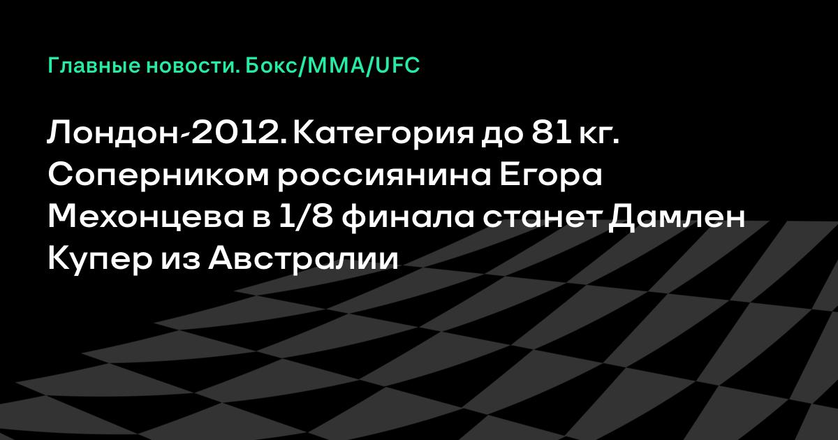Лондон-2012. Категория до 81 кг. Соперником россиянина Егора Мехонцева в 1/8 финала станет Дамлен Купер из Австралии