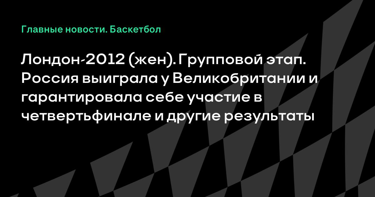 Лондон-2012 (жен). Групповой этап. Россия выиграла у Великобритании и гарантировала себе участие в четвертьфинале и другие результаты