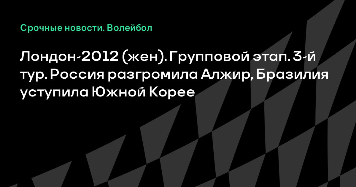 Лондон-2012 (жен). Групповой этап. 3-й тур. Россия разгромила Алжир, Бразилия уступила Южной Корее