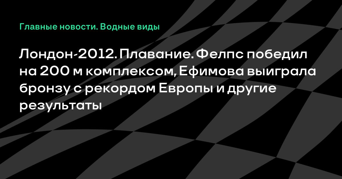 Лондон-2012. Плавание. Фелпс победил на 200 м комплексом, Ефимова выиграла бронзу с рекордом Европы и другие результаты