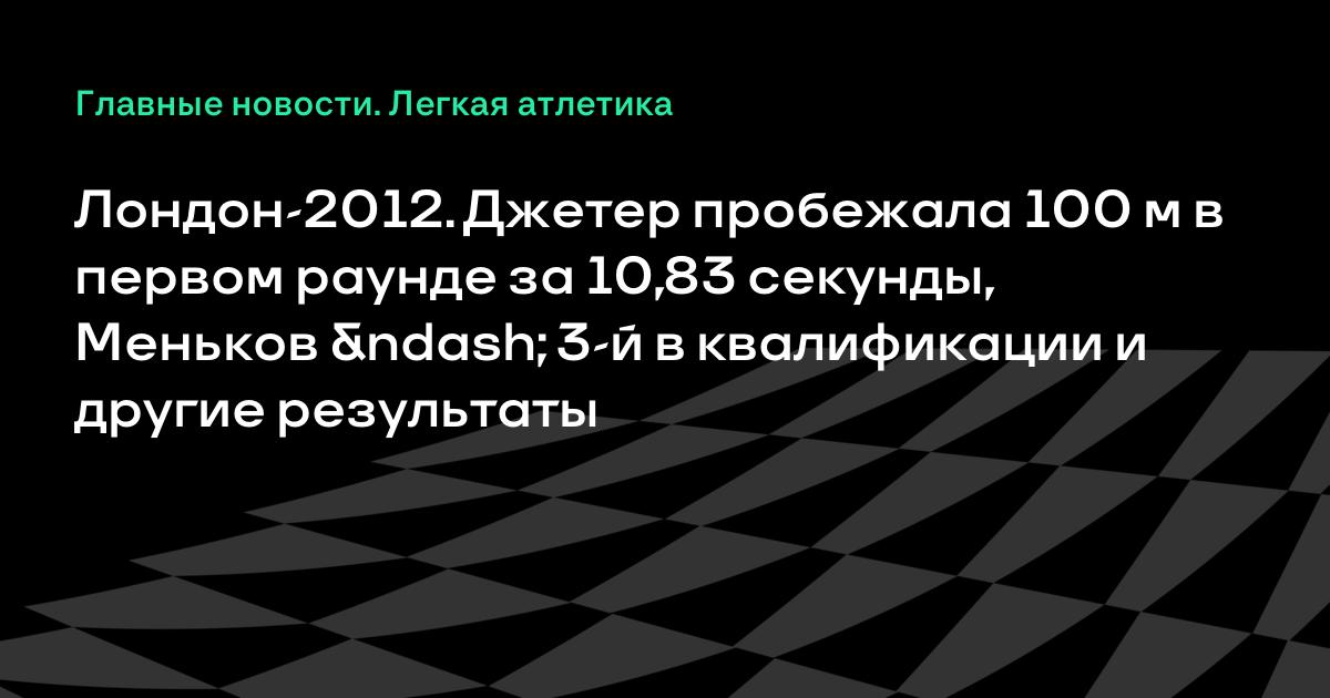Лондон-2012. Джетер пробежала 100 м в первом раунде за 10,83 секунды, Меньков – 3-й в квалификации и другие результаты