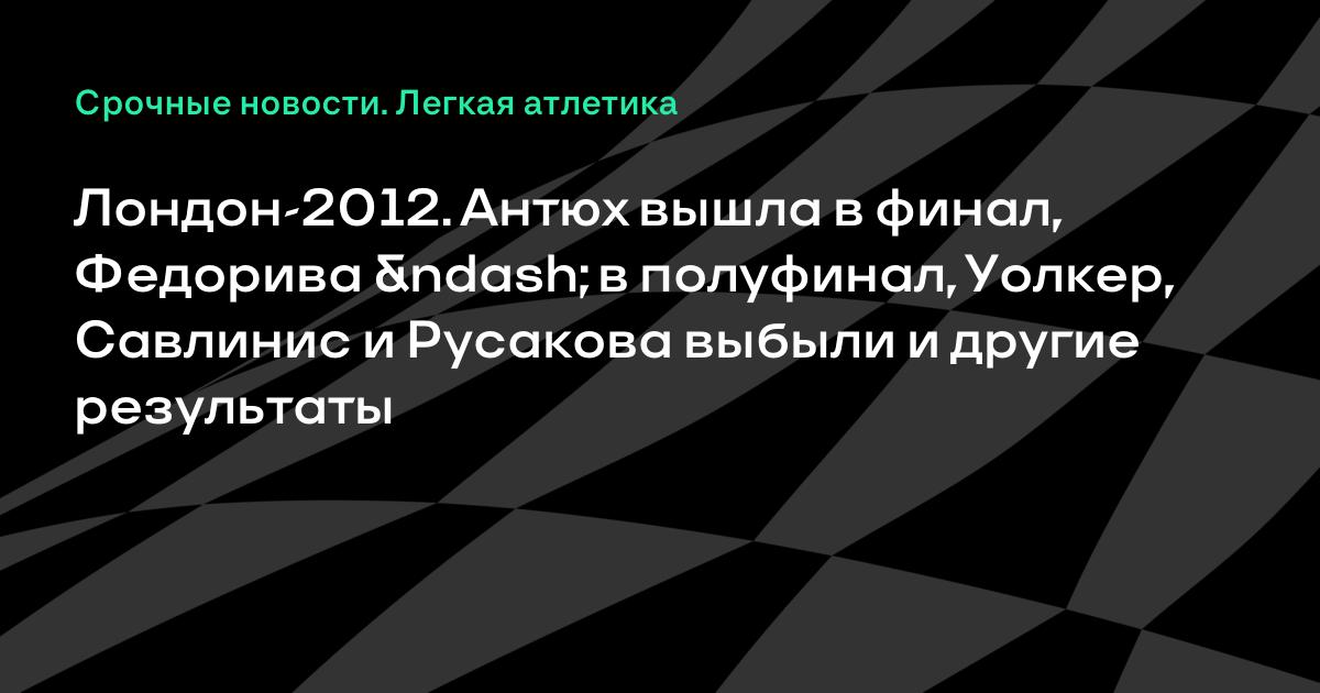 Лондон-2012. Антюх вышла в финал, Федорива – в полуфинал, Уолкер, Савлинис и Русакова выбыли и другие результаты