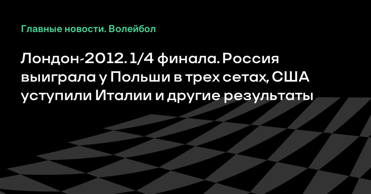 Сегодня на Олимпийских играх-2012 в Лондоне прошли четвертьфинальные матчи волейбольного турнира среди мужчин. Сборная России обыграла поляков в трех сетах, олимпийские чемпионы Пекина-2008 США уступили сборной Италии.