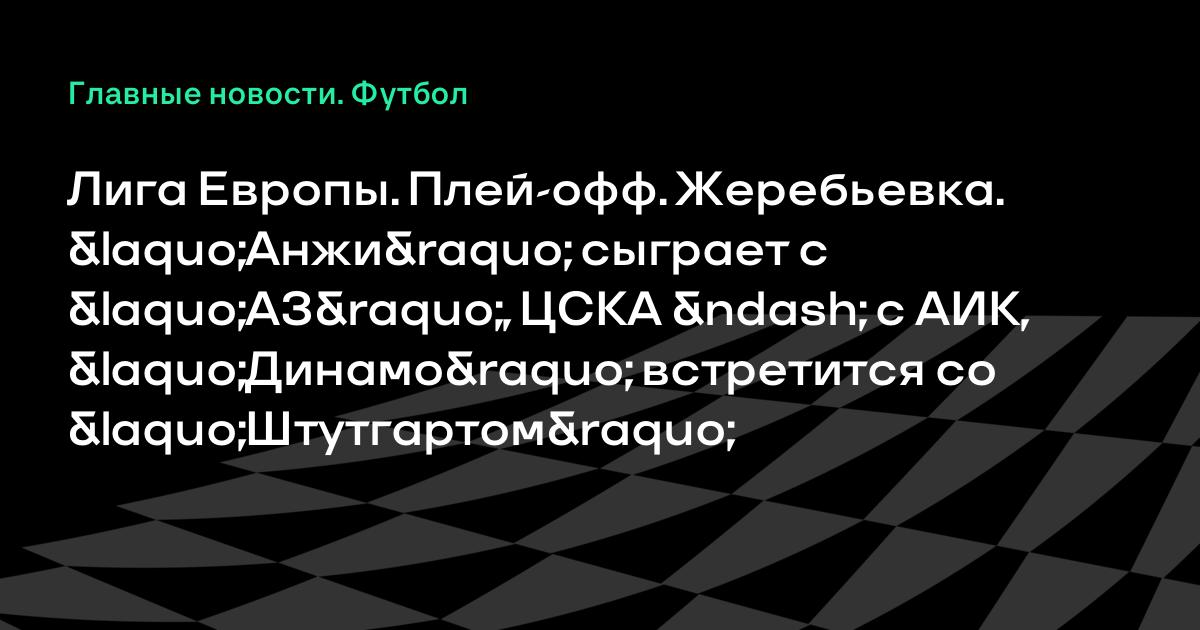 Лига Европы. Плей-офф. Жеребьевка. «Анжи» сыграет с «АЗ», ЦСКА – с АИК, «Динамо» встретится со «Штутгартом»