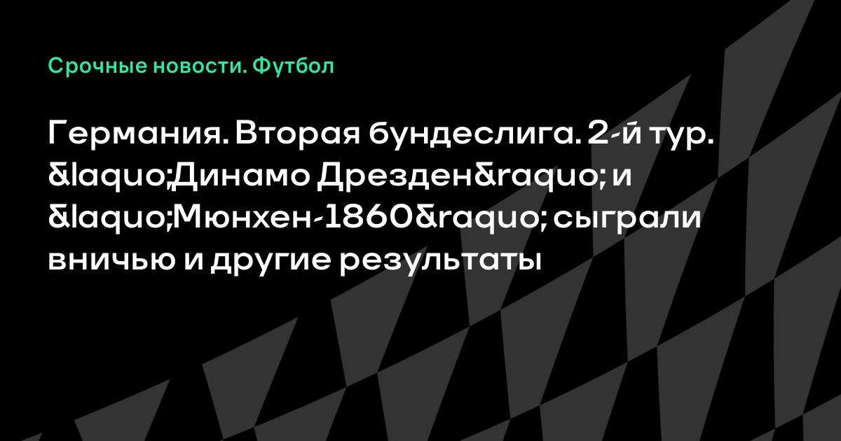 Германия. Вторая бундеслига. 2-й тур. «Динамо Дрезден» и «Мюнхен-1860» сыграли вничью и другие результаты