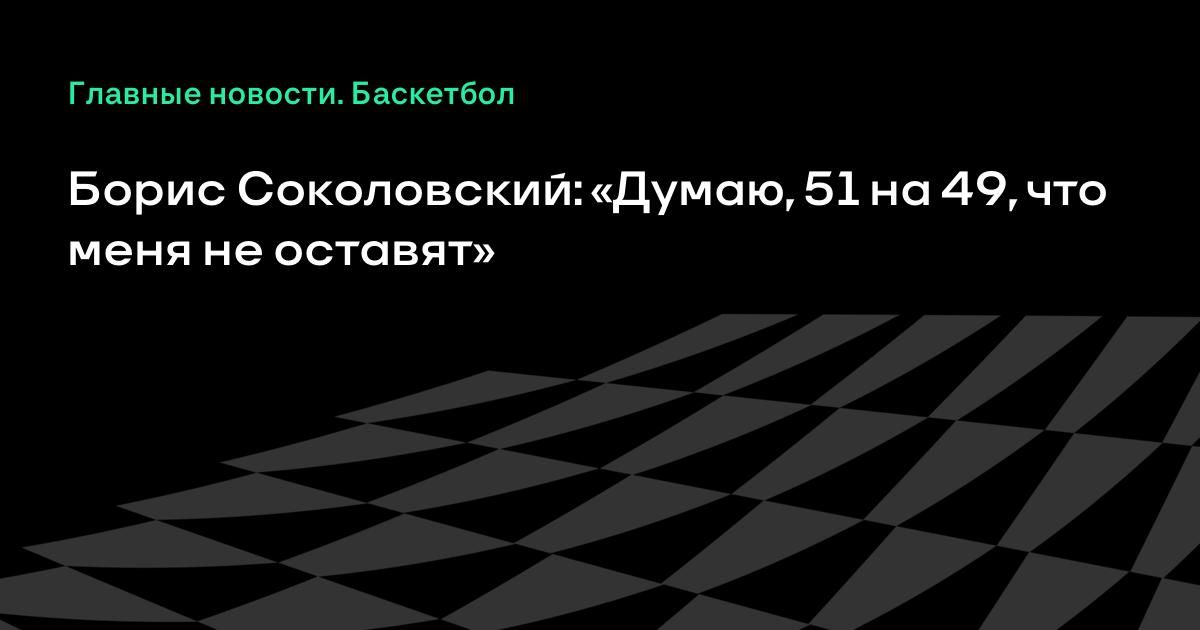 Оставят ли меня у руля сборной? Честно? Думаю, что 51 на 49, что меня не оставят. Но из баскетбола не уйду», – цитирует Соколовского «Советский спорт».