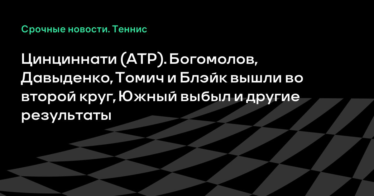 Цинциннати (АТР). Богомолов, Давыденко, Томич и Блэйк вышли во второй круг, Южный выбыл и другие результаты
