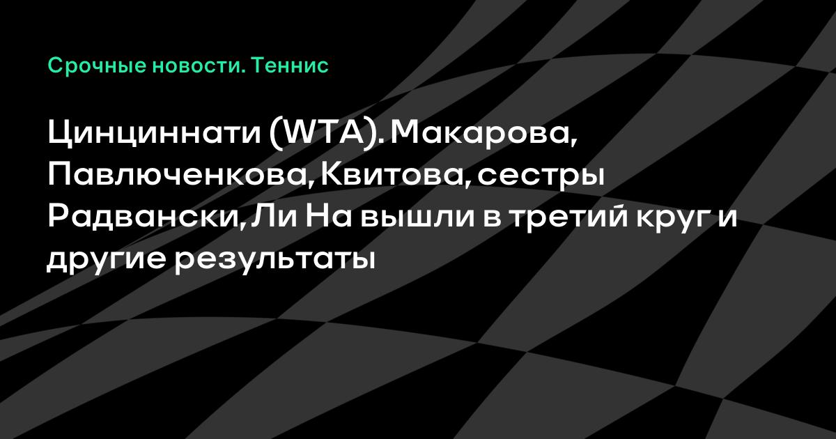 Цинциннати (WTA). Макарова, Павлюченкова, Квитова, сестры Радвански, Ли На вышли в третий круг и другие результаты