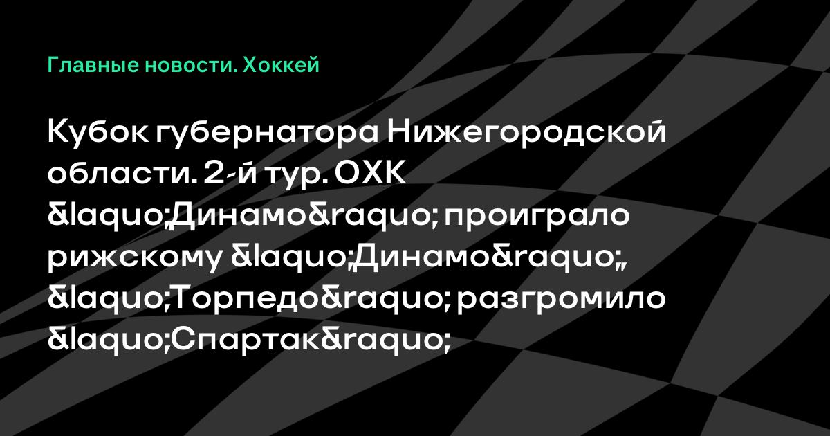Кубок губернатора Нижегородской области. 2-й тур. ОХК «Динамо» проиграло рижскому «Динамо», «Торпедо» разгромило «Спартак»
