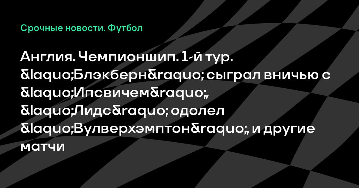 Англия. Чемпионшип. 1-й тур. «Блэкберн» сыграл вничью с «Ипсвичем», «Лидс» одолел «Вулверхэмптон», и другие матчи