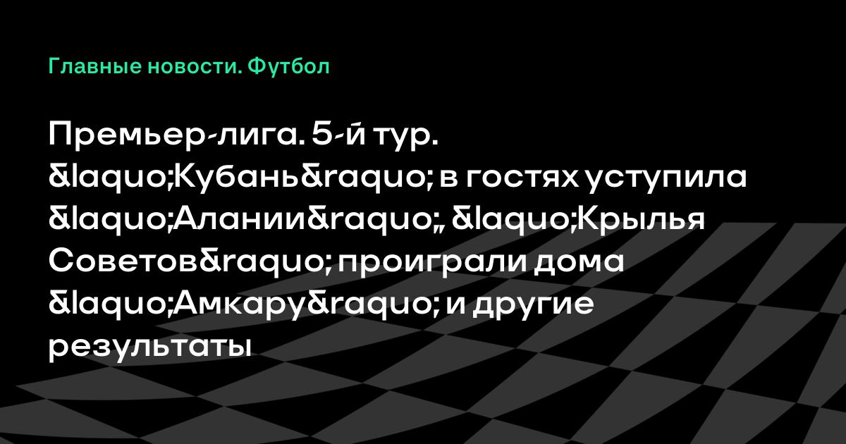 Премьер-лига. 5-й тур. «Кубань» в гостях уступила «Алании», «Крылья Советов» проиграли дома «Амкару» и другие результаты