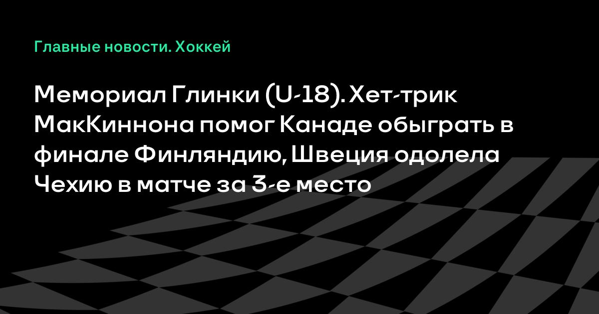 Мемориал Глинки (U-18). Хет-трик МакКиннона помог Канаде обыграть в финале Финляндию, Швеция одолела Чехию в матче за 3-е место