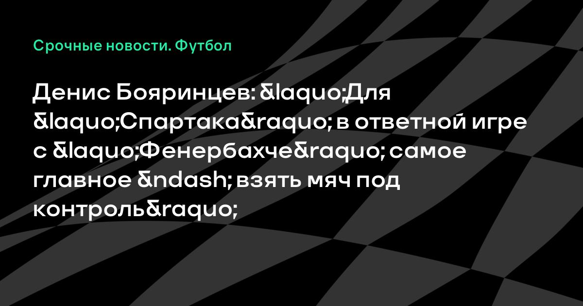 Бывший полузащитник «Спартака» Денис Бояринцев рассказал, за счет чего, по его мнению, красно-белые смогут добиться положительного результата в ответной игре плей-офф Лиги чемпионов против «Фенербахче» (первый матч – 2:1).