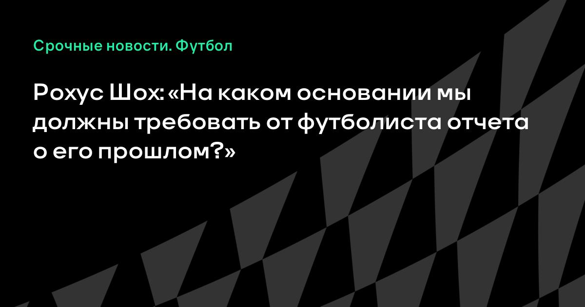 Рохус Шох: «На каком основании мы должны требовать от футболиста отчета о его прошлом?»