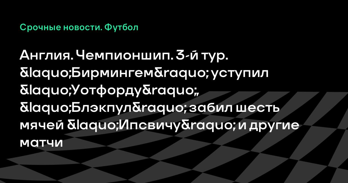 В 3-м туре английского чемпионшипа «Уотфорд» дома обыграл «Бирмингем» (2:0), «Блэкпул» разгромил «Ипсвич» (6:0), а «Лидс» одолел «Питерборо» (2:1).