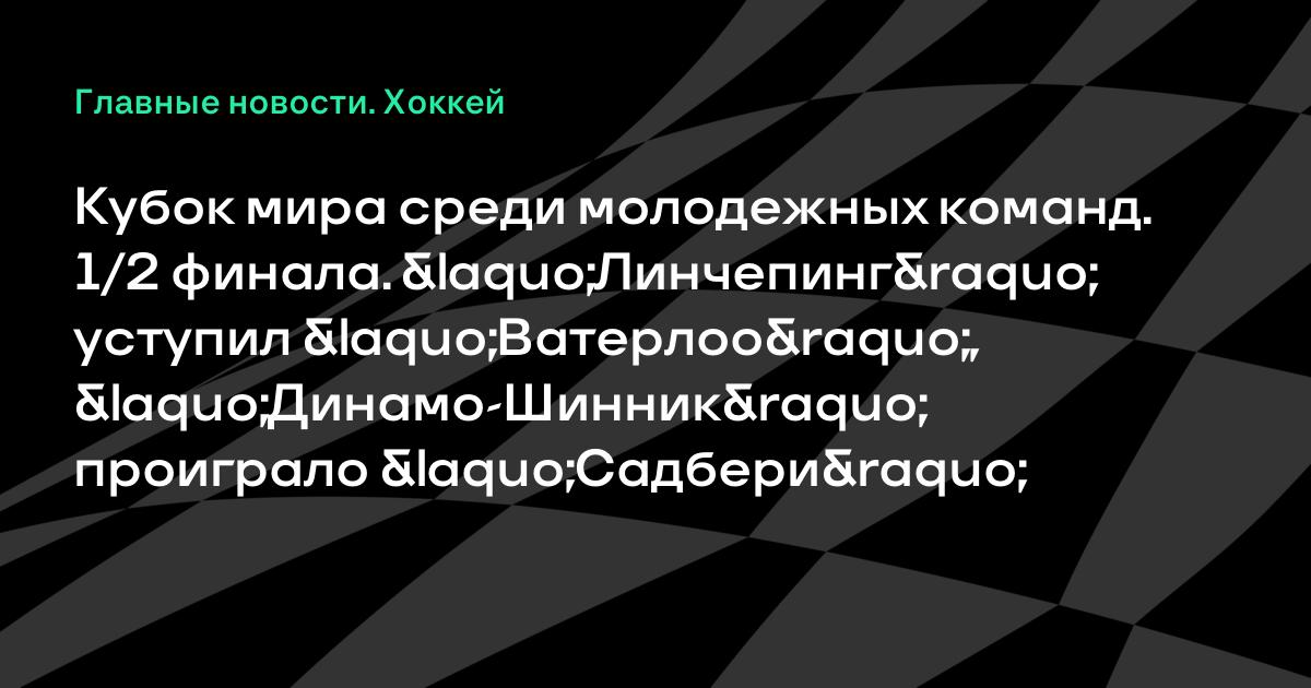 В полуфиналах Кубка мира среди молодежных команд «Линчепинг» по буллитам проиграл «Ватерлоо» (4:5 Б), «Динамо-Шинник» оказалось слабее «Садбери» (2:5).