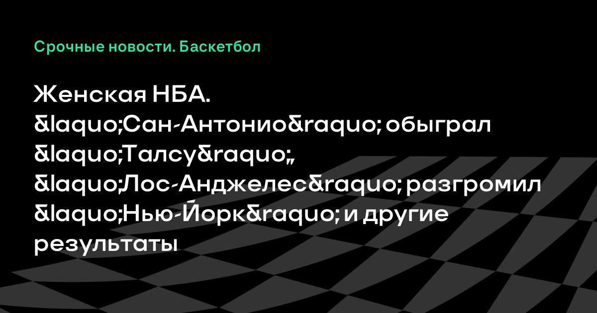 Женская НБА. «Сан-Антонио» обыграл «Талсу», «Лос-Анджелес» разгромил «Нью-Йорк» и другие результаты