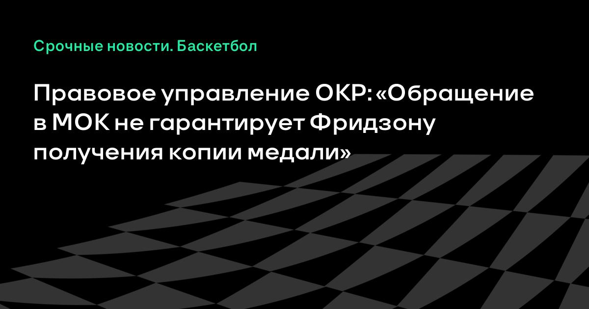 Правовое управление ОКР: «Обращение в МОК не гарантирует Фридзону получения копии медали»