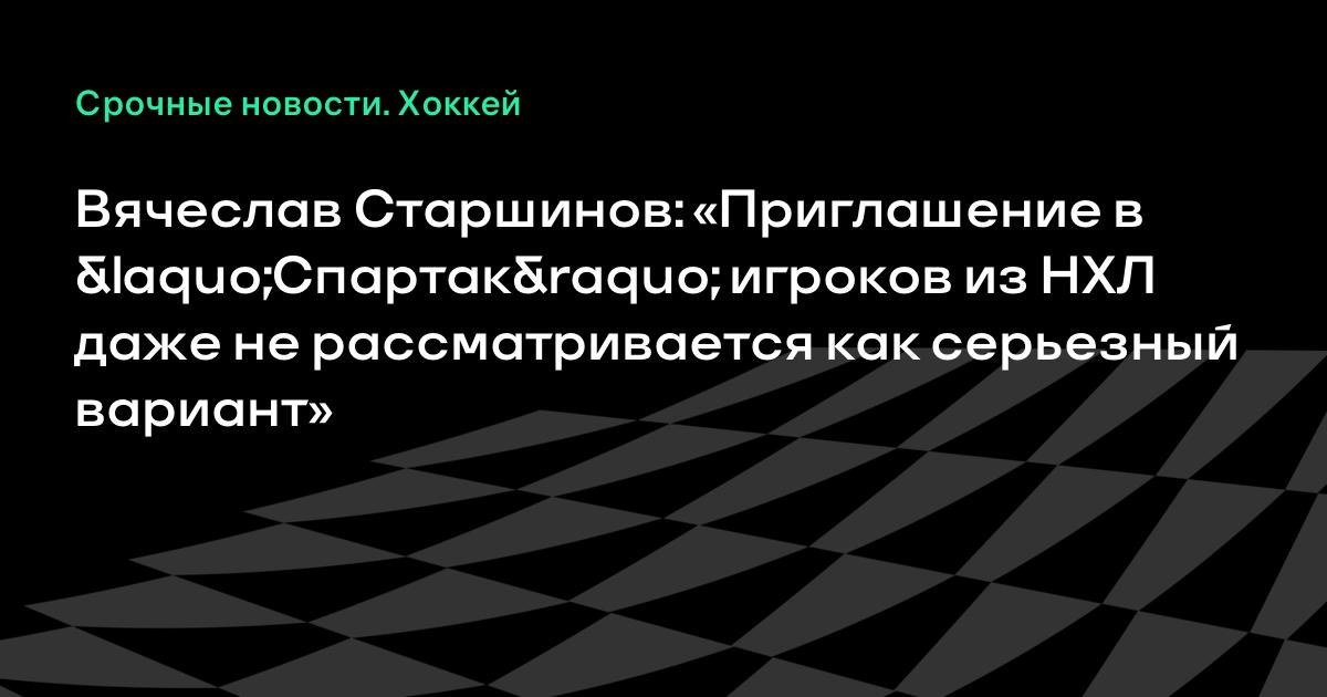 Вячеслав Старшинов: «Приглашение в «Спартак» игроков из НХЛ даже не рассматривается как серьезный вариант»
