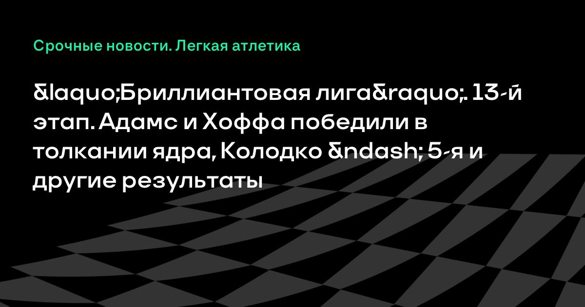 «Бриллиантовая лига». 13-й этап. Адамс и Хоффа победили в толкании ядра, Колодко – 5-я и другие результаты