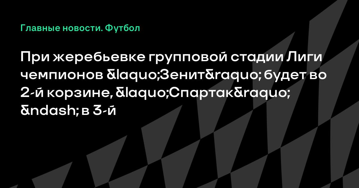 При жеребьевке групповой стадии Лиги чемпионов «Зенит» будет во 2-й корзине, «Спартак» – в 3-й