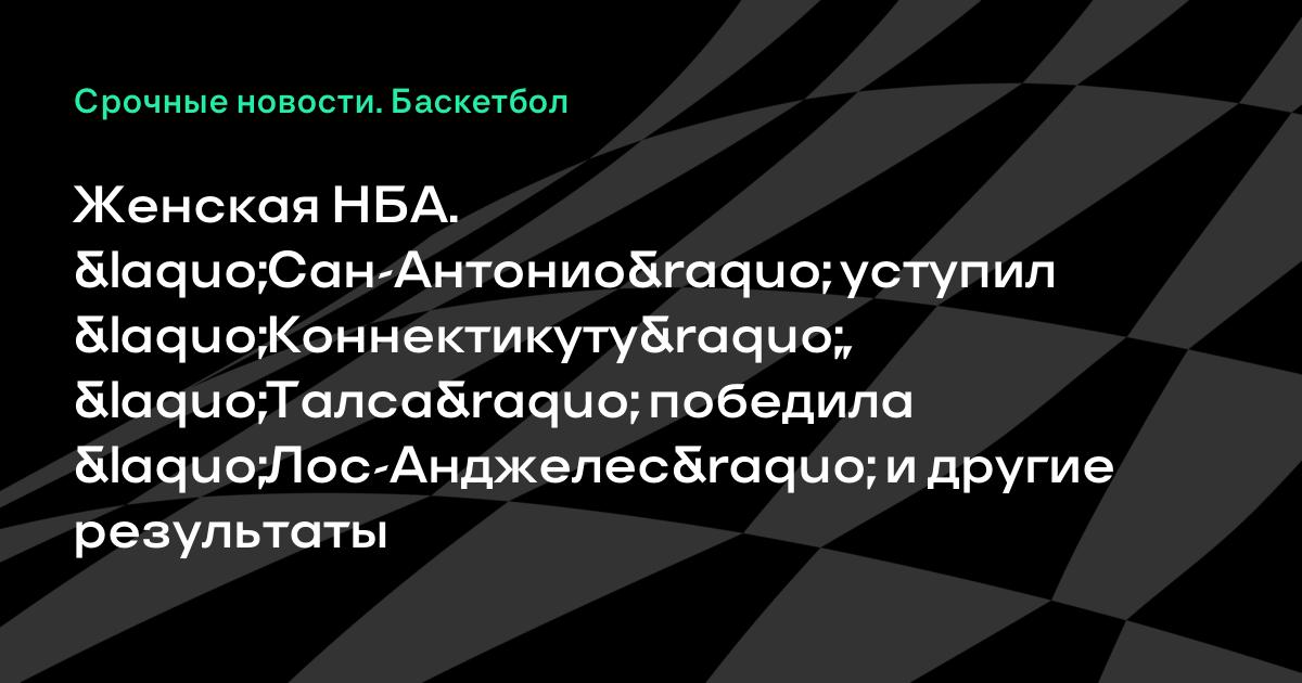 Женская НБА. «Сан-Антонио» уступил «Коннектикуту», «Талса» победила «Лос-Анджелес» и другие результаты