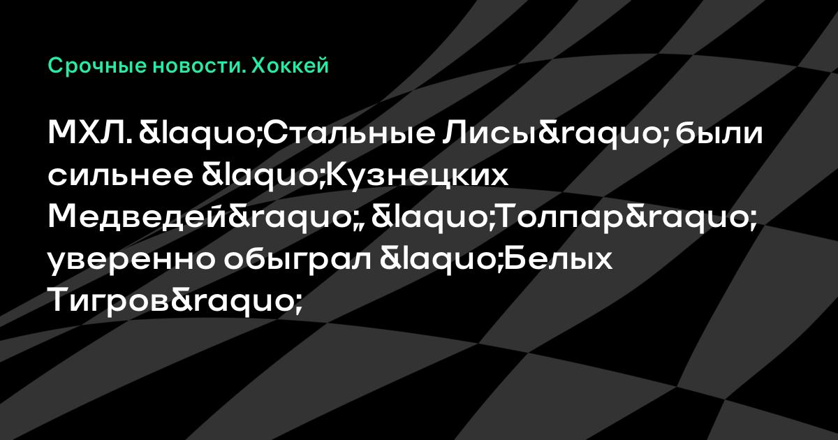 МХЛ. «Стальные Лисы» были сильнее «Кузнецких Медведей», «Толпар» уверенно обыграл «Белых Тигров»