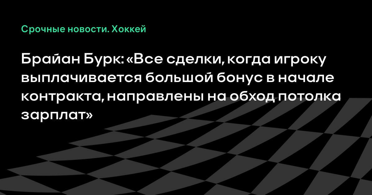 Брайан Бурк: «Все сделки, когда игроку выплачивается большой бонус в начале контракта, направлены на обход потолка зарплат»
