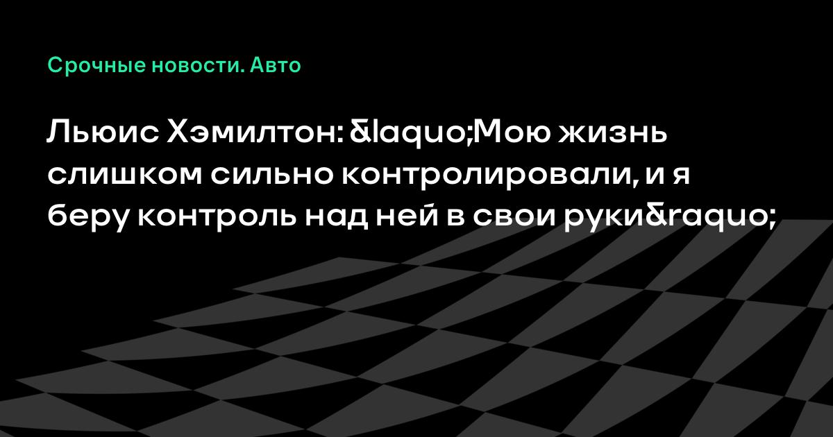 Льюис Хэмилтон: «Мою жизнь слишком сильно контролировали, и я беру контроль над ней в свои руки»