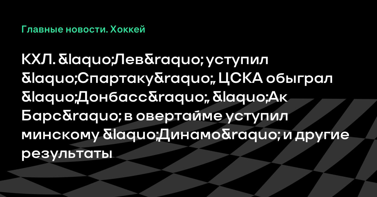 КХЛ. «Лев» уступил «Спартаку», ЦСКА обыграл «Донбасс», «Ак Барс» в овертайме уступил минскому «Динамо» и другие результаты