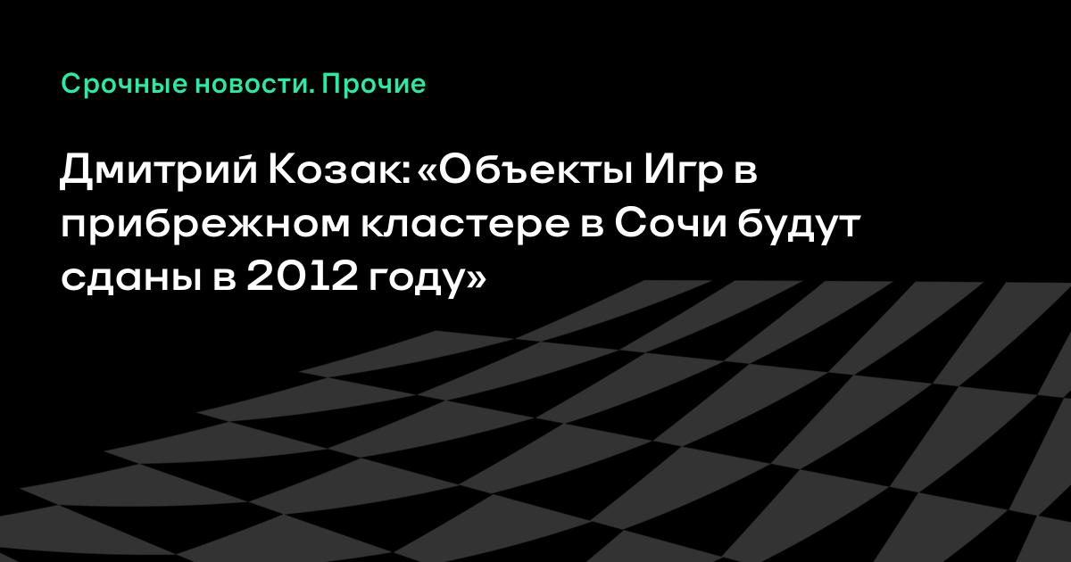 Дмитрий Козак: «Объекты Игр в прибрежном кластере в Сочи будут сданы в 2012 году»