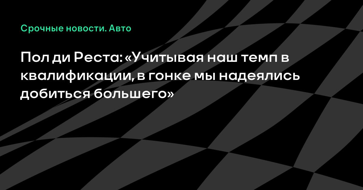 Пол ди Реста: «Учитывая наш темп в квалификации, в гонке мы надеялись добиться большего»