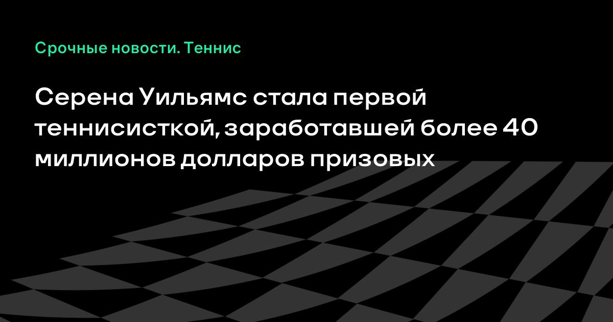 Американка Серена Уильямс, сумма заработанных за карьеру призовых которой после победы на US Open достигла 40 047 909 долларов, стала первой в истории WTA теннисисткой, заработавшей более 40 миллионов долларов своими выступлениями на корте, сообщает официальный твиттер SI.com.