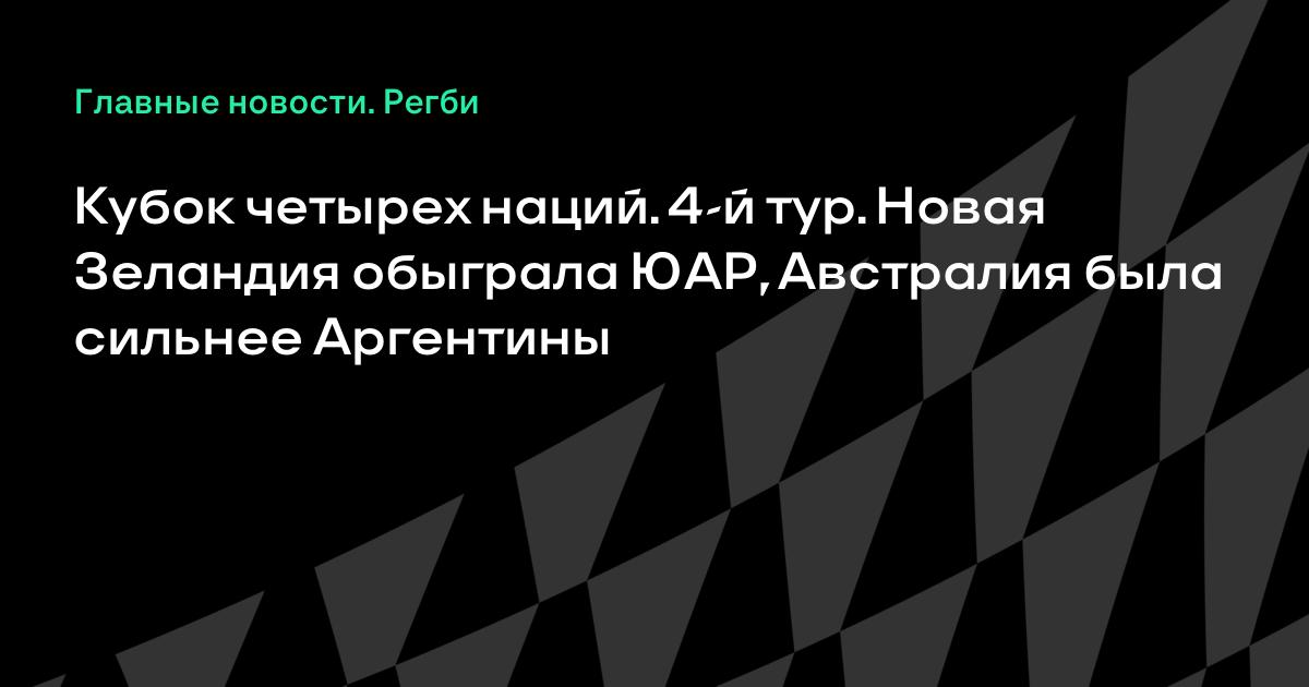 Сегодня прошел 4-й тур регбийного Кубка четырех наций. Сборная Новой Зеландии в Данидине обыграла ЮАР (21:11), Австралия в Голд-Косте победила Аргентину (23:19).