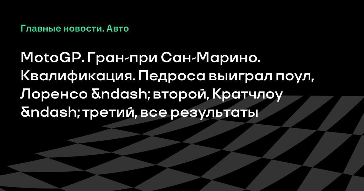 MotoGP. Гран-при Сан-Марино. Квалификация. Педроса выиграл поул, Лоренсо – второй, Кратчлоу – третий, все результаты