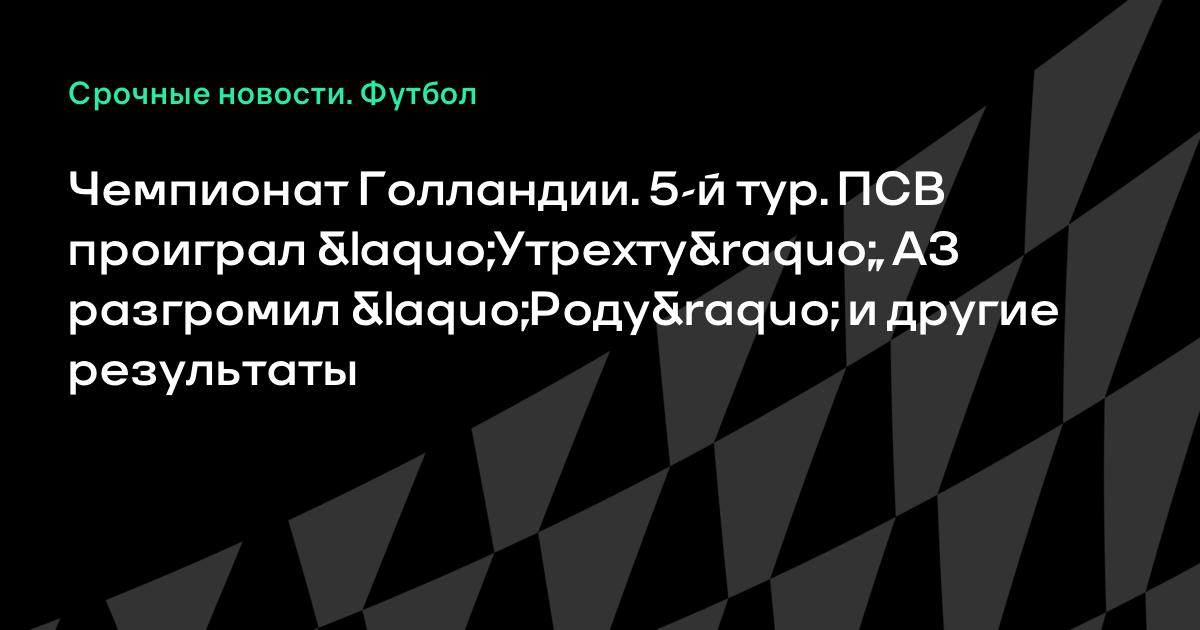 Чемпионат Голландии. 5-й тур. ПСВ проиграл «Утрехту», АЗ разгромил «Роду» и другие результаты