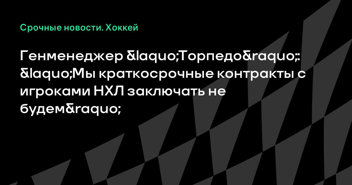 Генменеджер «Торпедо»: «Мы краткосрочные контракты с игроками НХЛ заключать не будем»