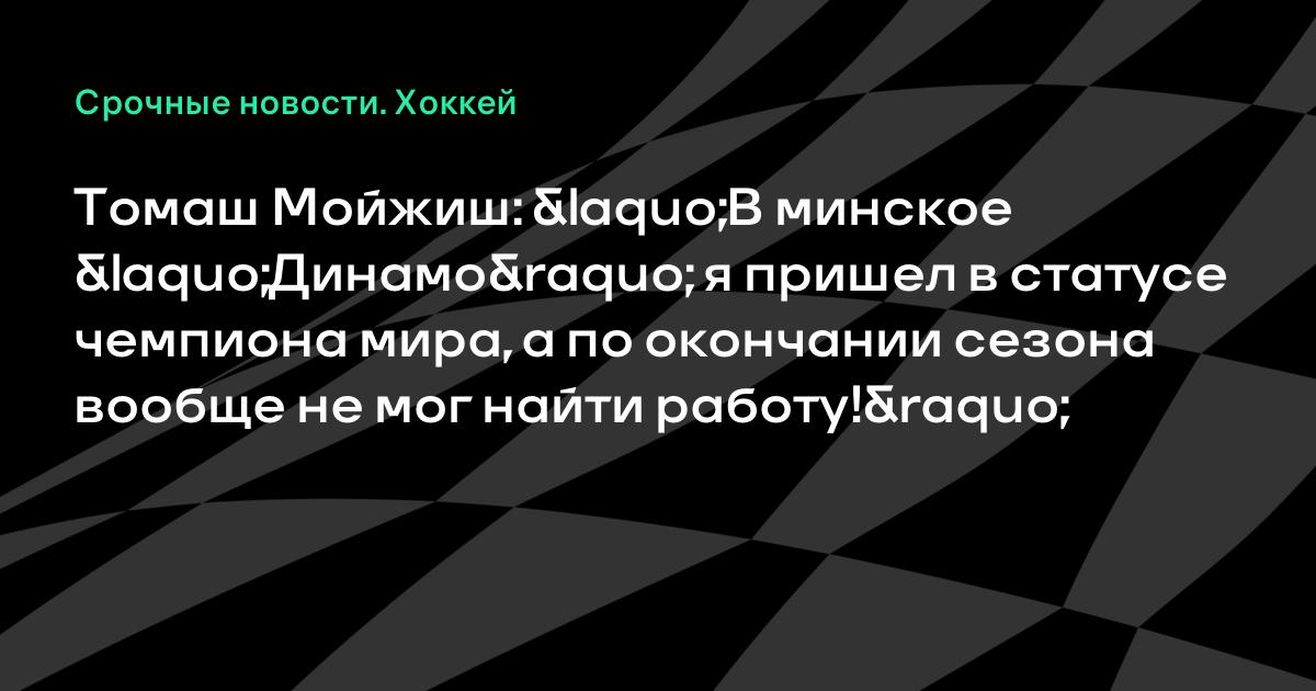 Томаш Мойжиш: «В минское «Динамо» я пришел в статусе чемпиона мира, а по окончании сезона вообще не мог найти работу!»