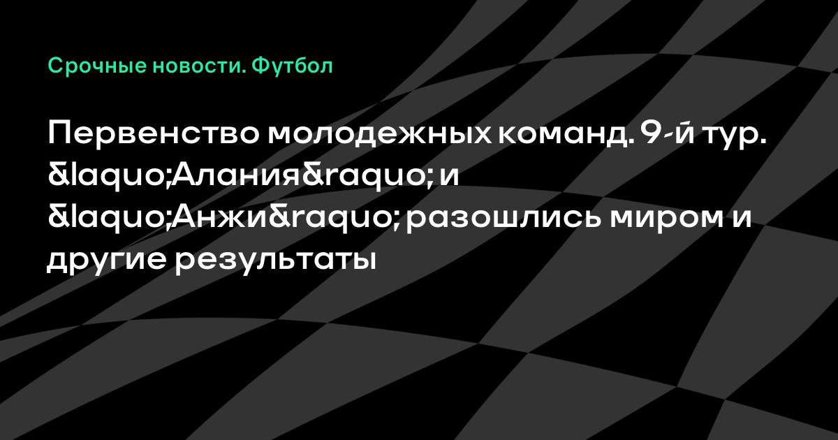Первенство молодежных команд. 9-й тур. «Алания» и «Анжи» разошлись миром и другие результаты