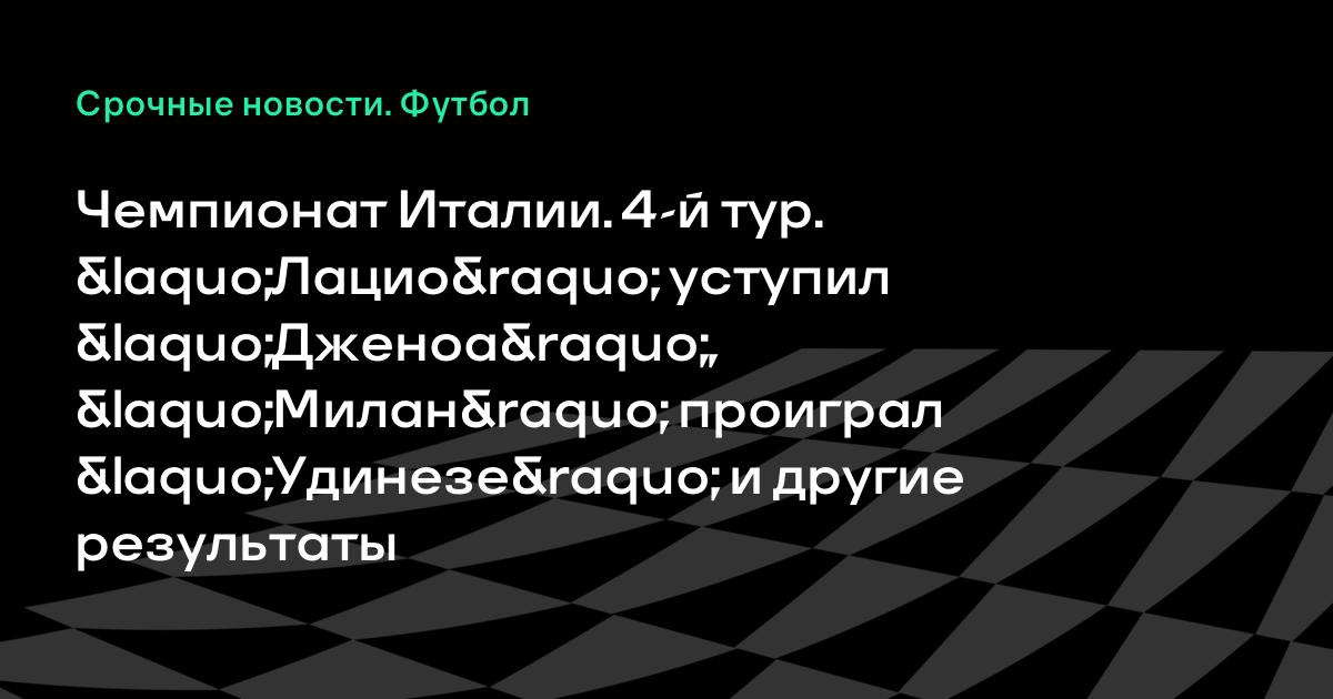 Чемпионат Италии. 4-й тур. «Лацио» уступил «Дженоа», «Милан» проиграл «Удинезе» и другие результаты