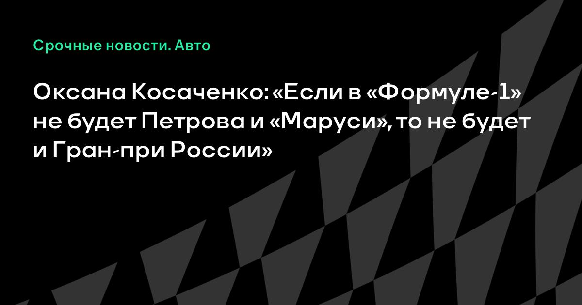 Возможно, это может прозвучать несколько самонадеянно, но я скажу так: нет Петрова в «Формуле-1», нет «Маруси» в «Формуле-1» – и не будет никакого Гран-при России. Не надо мечтать», – рассказала Косаченко в эфире радиостанции «ЭХО Москвы»