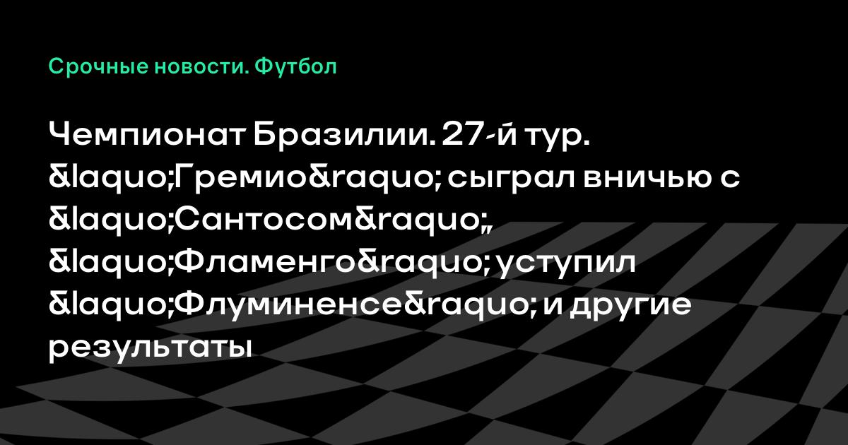 Чемпионат Бразилии. 27-й тур. «Гремио» сыграл вничью с «Сантосом», «Фламенго» уступил «Флуминенсе» и другие результаты