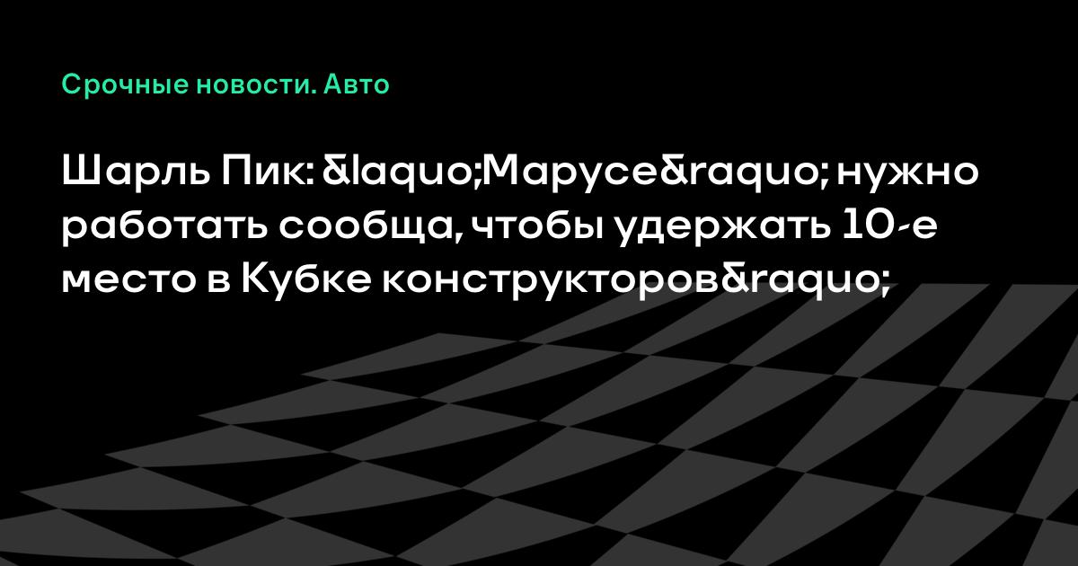 Шарль Пик: «Марусе» нужно работать сообща, чтобы удержать 10-е место в Кубке конструкторов»